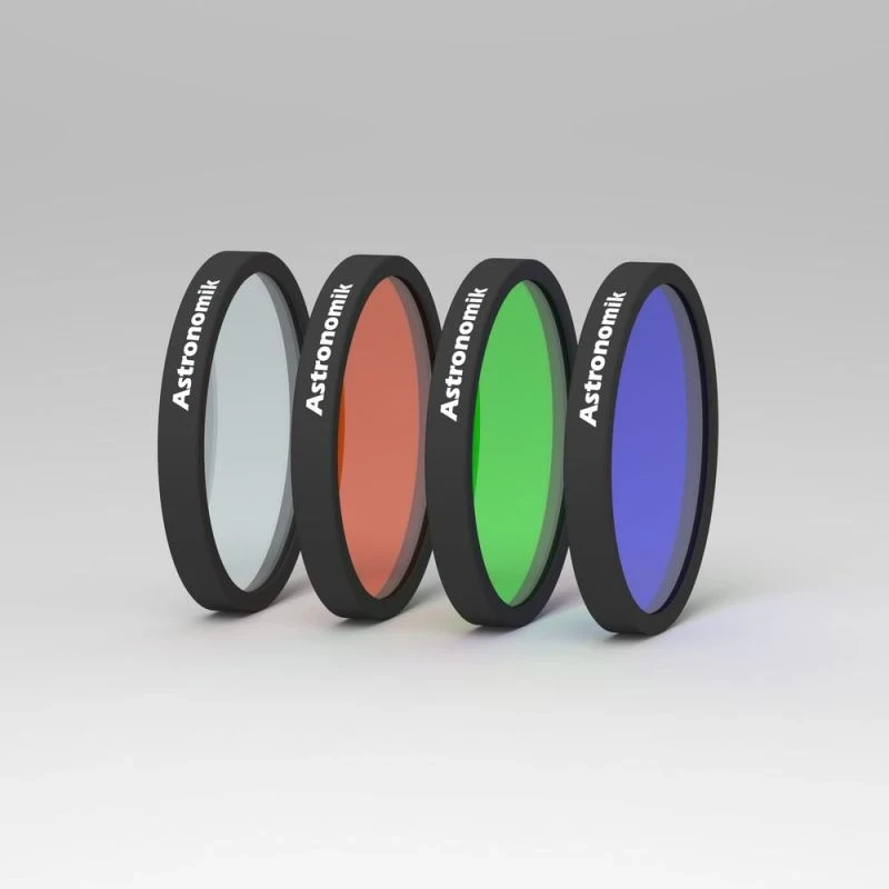Do you want to capture color images with your monochrome CCD camera that records black-and-white pictures? In this case, it is essential to place special filters in front of the camera. The Astronomik L-RGB filters are designed to match the characteristics of CCD cameras, and by using the set of 4 filters, you will achieve completely color-accurate and tone-correct images: the digital images will reveal the object in colors as if viewed with the naked eye.