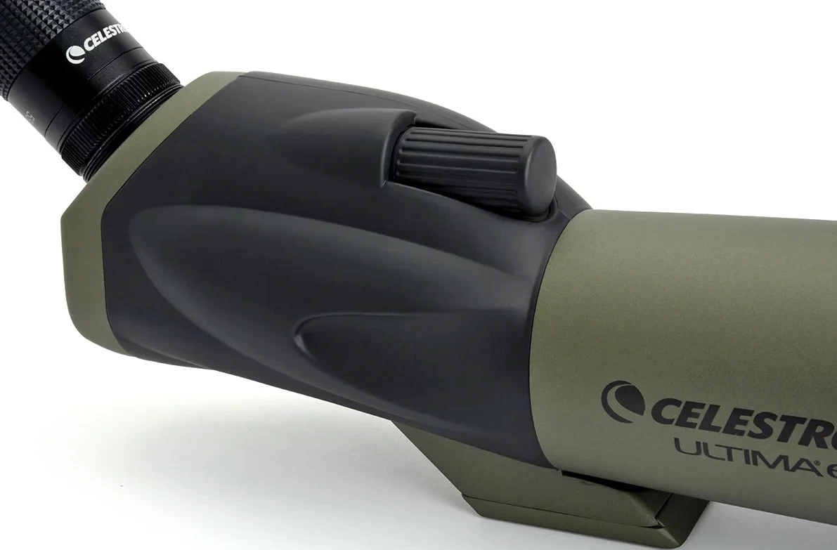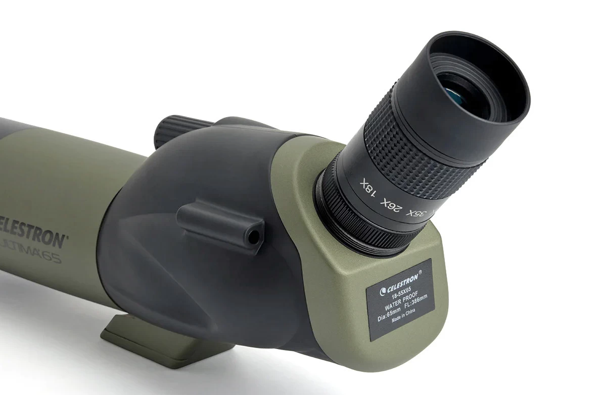 The Celestron Ultima's 65 mm diameter objective lens provides remarkably clear images, especially during daytime use. Thanks to its particularly high-quality anti-reflection coatings, its image is more colourful than its competitors. The zoom eyepiece included in the basic package allows you to quickly adjust between 18x and 55x magnifications - just twist the side and in one movement you can get up close to, for example, a bird's colourful plumage or a deer's antlers.