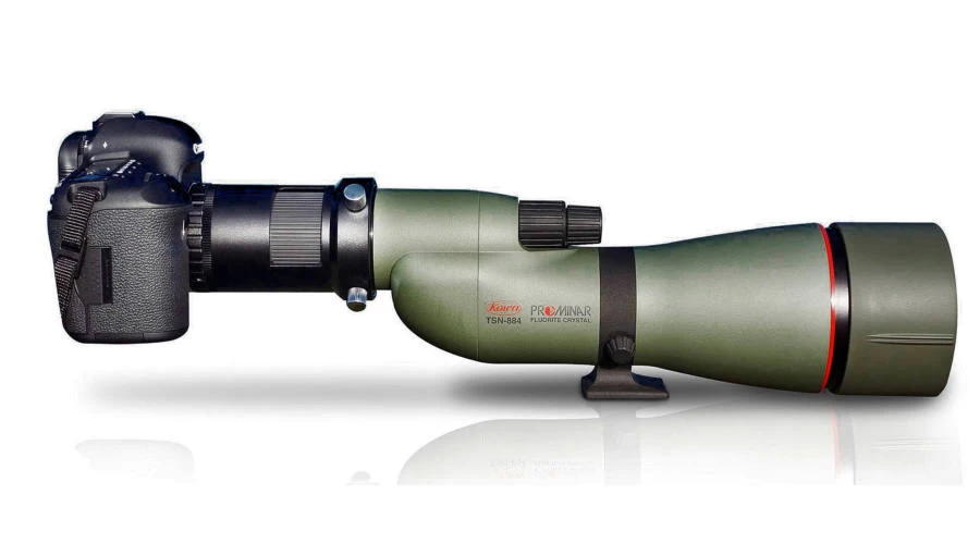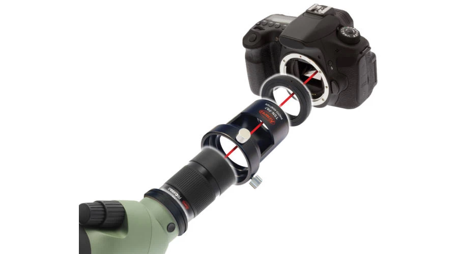 With the Kowa TSN spectral PA-7 DSLR digiscoping adapter the Kowa TSN 880/770 spectral can be connected to a DSLR camera, providing a high performance and excellent telephoto lens for nature photography and video shooting. The digiscoping adapter turns your spectra into a variable focus telephoto lens. Depending on the camera manufacturer, a T2 ring may be required for the adapter.