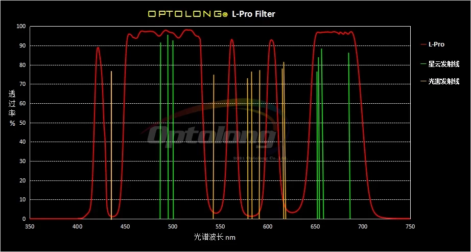 Optolong's L-pro CCD depth filters are made of German Schott glass and have a machining accuracy of at least 1/4 lambda. They transmit more than 90 percent of the light. They have a multi-layer anti-reflection coating and, for durability, a hard, scratch-resistant (IBAD) coating.