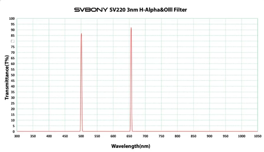 The Svbony SV220 Duo-Band (H-Alpha & OIII) 3 nm Filter (1.25") is an ideal choice for astronomy enthusiasts looking to take their deep-sky object imaging to the next level. This filter is particularly suitable for capturing the hydrogen-alpha (H-Alpha) and oxygen-III (OIII) emission lines, thanks to its narrow bandwidth of just 3 nm. The Svbony SV220 filter delivers outstanding performance with its high light transmission capability, ensuring clear and detailed images.
