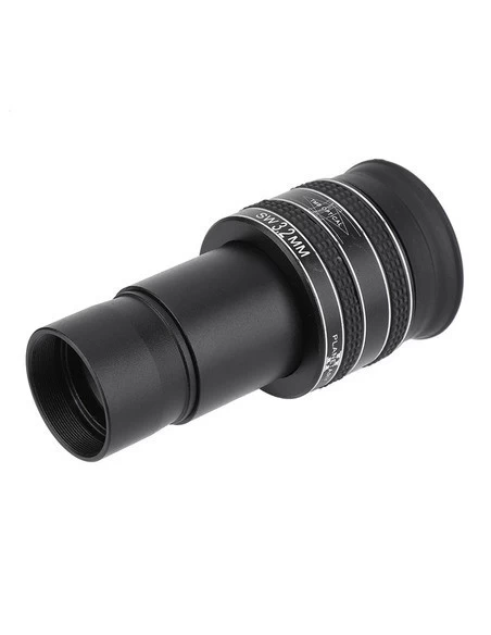 A 16 mm eye relief ensures comfortable viewing, and the top of the eyepiece can be adjusted with a screw to keep the eye at the ideal distance. The field of view is a respectable 58° and very well corrected. The eyepiece consists of 5 lens elements (except for the 9 mm, which consists of 6 elements) and, of course, all elements are fully multicoated.