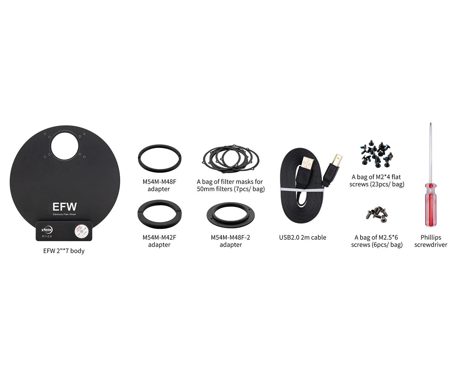 With the ZWO motorized filter changer for 7 2" filters, you can easily and quickly change filters from your computer, providing you with significant convenience for both visual and photographic observations.