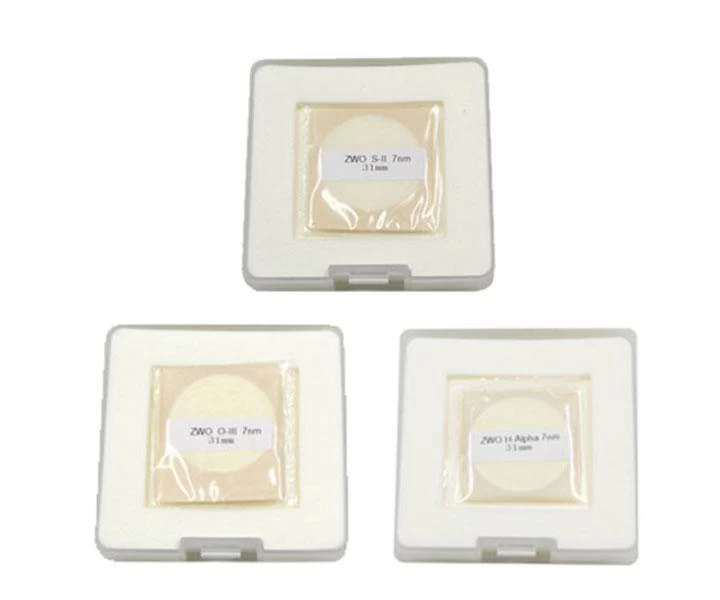 Maximum light transmission of all three filters is above 80%, with the H-Alpha filter peaking at 656 nm, the O-III filter at 500 nm and the S-II filter at 672 nm, mainly helping to photographically capture nebulae, supernova remnants, etc. emitting in these wavelengths.