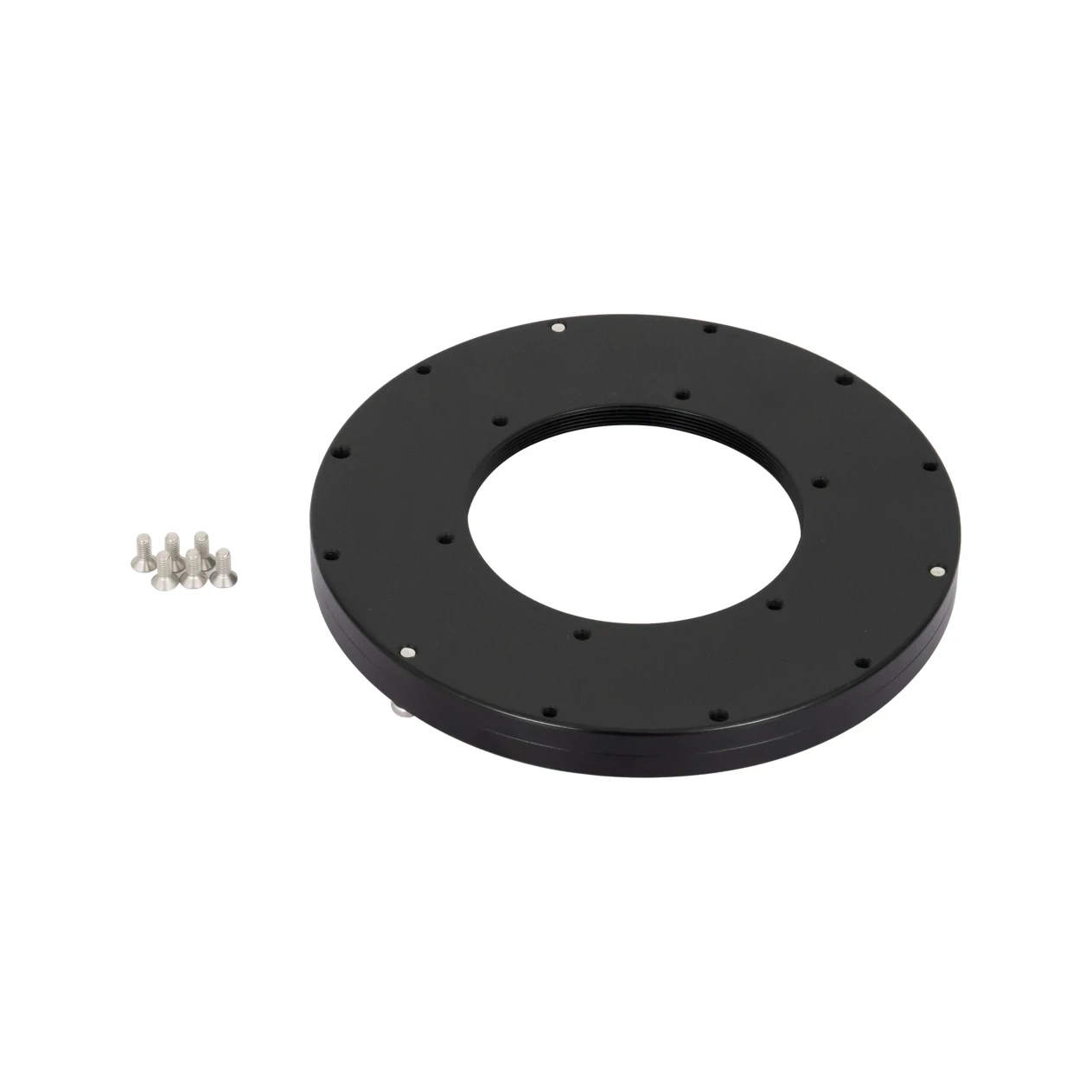 The tilt adapter allows for fine adjustment of the camera's tilt angle, enabling correction of minor deviations relative to the optical axis. An advantage is that it can be adjusted from the rear, meaning the adjustment screws remain accessible even when assembled with a filter wheel, filter drawer, etc.