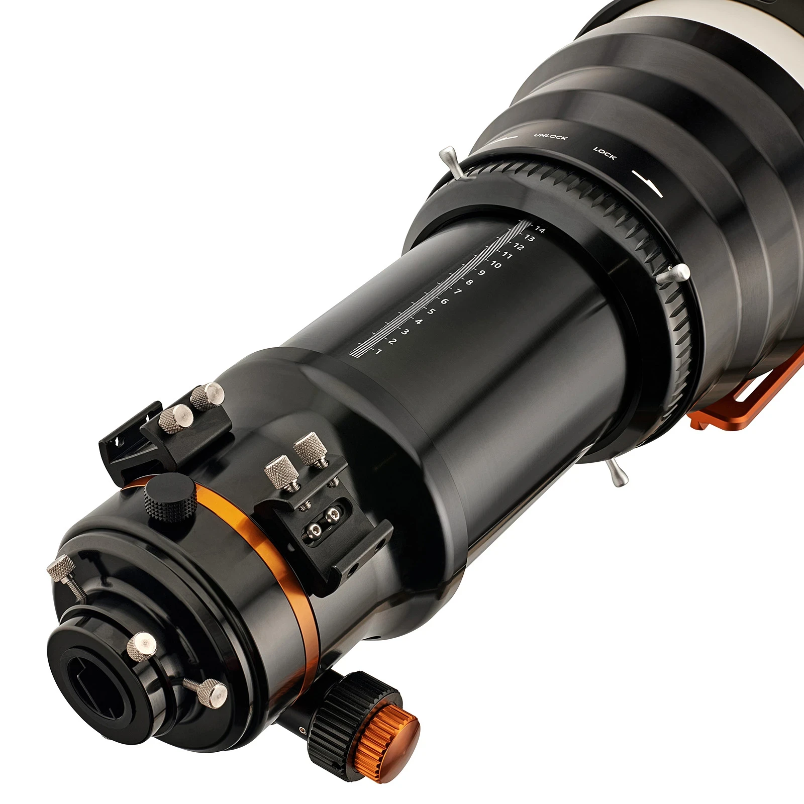 Objektív s priemerom 203 mm s trojčlennou (triplet) ED šošovkou minimalizuje chromatickú aberáciu pri ohniskovej vzdialenosti 1421 mm. Tubus má 3,5" dvojrýchlostný hrebeňový výťah, ktorý zaisťuje presné zaostrenie. Dôležitou vlastnosťou je, že je otočný o 360 stupňov, čo umožňuje jednoduché nastavenie v akejkoľvek polohe.
