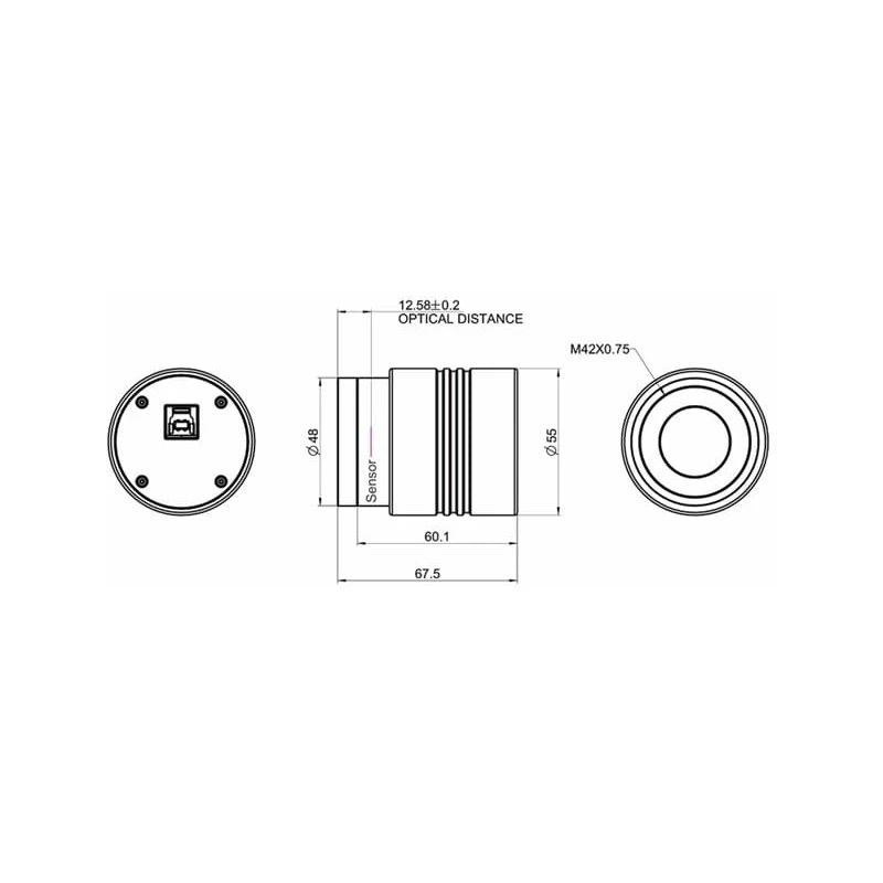 Farebný snímač Sony IMX585 má obrazovú uhlopriečka 12,86 mm a veľkosť pixelu 2,9 mikrónu, vďaka čomu ponúka široké zorné pole aj pri vyššom rozlíšení. Kamera je preto ideálnou voľbou nielen na fotografovanie planét a Mesiaca, ale aj na základné snímanie objektov hlbokého neba. Jej vysokú citlivosť naplno využijete v oboch prípadoch.