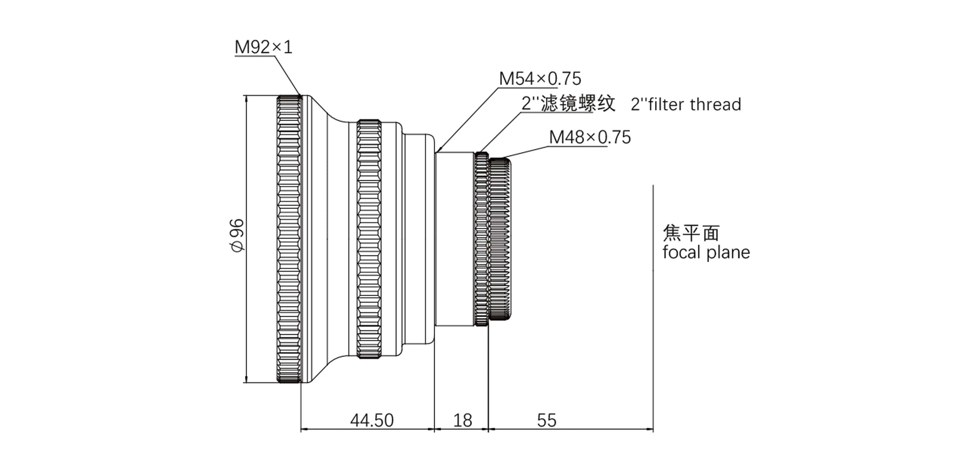 Reduktor má 44 mm priemer obrazu, ktorý je ideálny aj pre použitie s full-frame kamerami. Na strane kamery nájdeme závity M48 a M54, ktoré umožňujú širokú kompatibilitu s rôznymi systémami. Pri pripojení M48 získame klasickú vzdialenosť senzora 55 mm, ktorá sa pri použití závitu M54 zvýši na 73 mm.