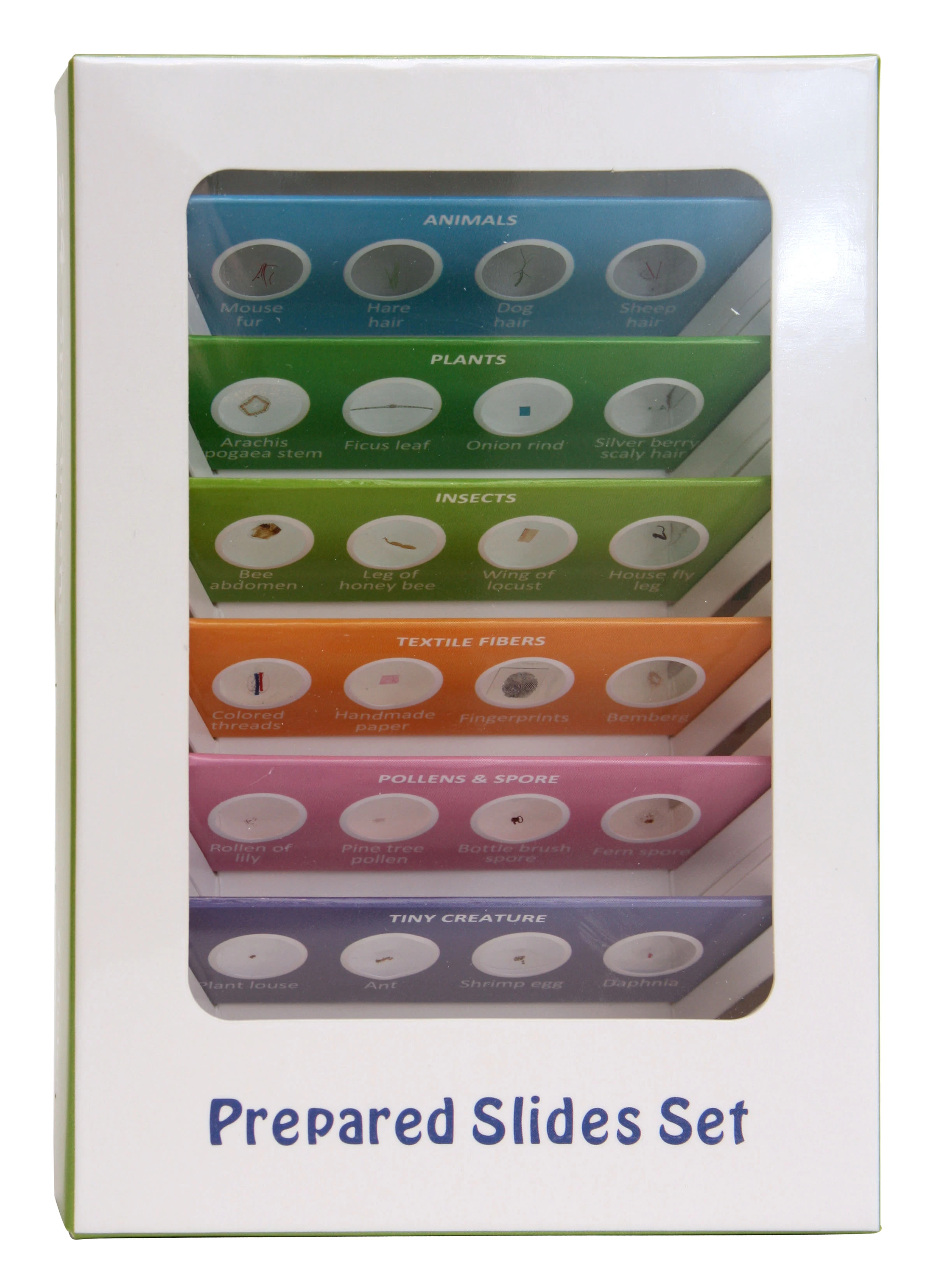 24 részes preparátum gyűjtemény kiváló szórakozást és tanulási lehetőséget nyújtanak a biológiai mikroszkópok tulajdonosainak: különböző témakörökben összeállított minták növényi, állati metszeteket tartalmaznak, melyekből megismerhetővé válik a mikrovilág.