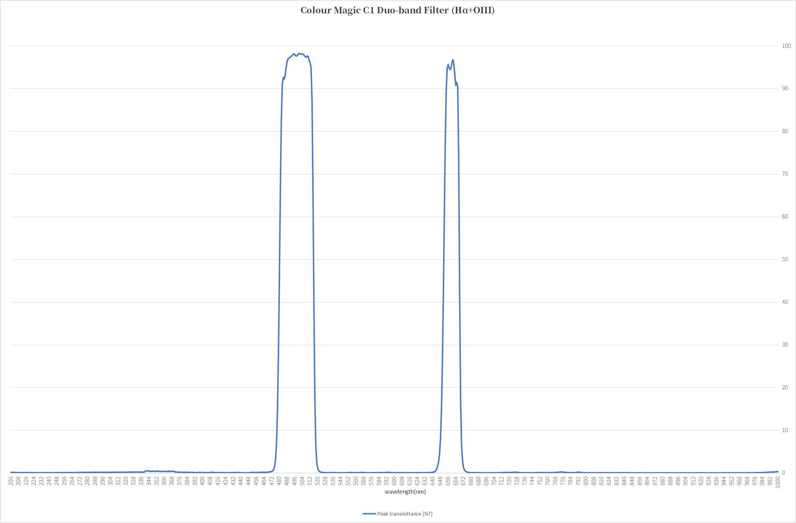 A H-alfa tartományban a szűrő 15 nm sávszélességgel dolgozik, ami a 656.6 nm-es hullámhosszon nyújt kiváló teljesítményt, kiemelve a hidrogén gazdag régiókat. Az OIII tartományban pedig 35 nm sávszélességével a 500.7 nm-es hullámhossz környékéről gyűjti az információt, lehetővé téve a planetáris ködök és más oxigén-gazdag objektumok részletes vizsgálatát.