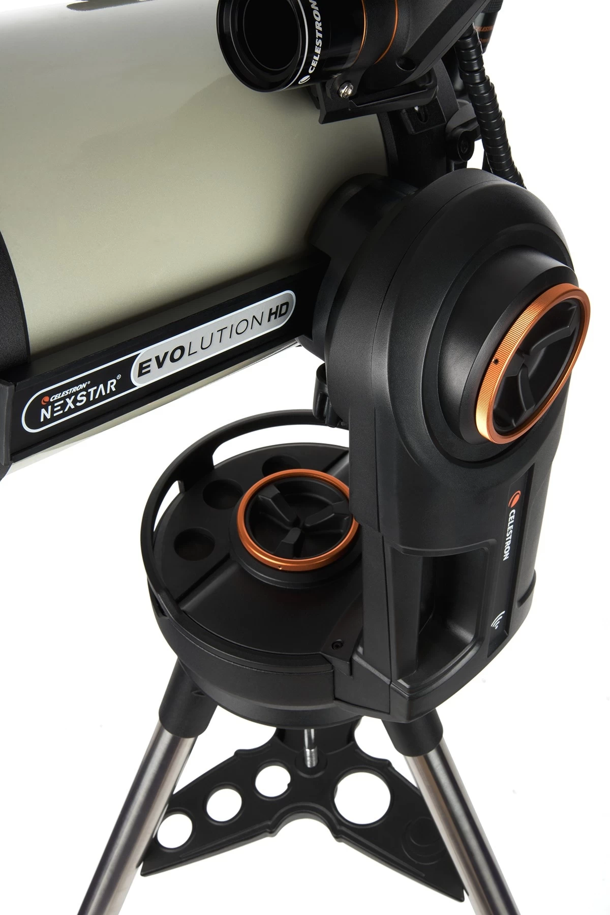 Igen jelentős fejlesztés, hogy a cserélhető elemek vagy külső áramforrás helyett, a mérnökök egy beépített tápegység mellett döntöttek. Az újratölthető lítium-ion akkumlátornak köszönhetően akár 10 órán keresztül is észlelhetünk egyhuzamban. Ráadásul alacsony feltöltöttségnél automatikusan energiatakarékos üzemmódba kapcsol a rendszer. Az Evolution sorozat további előnyei között említhetjük a manuális kuplungokat, amelyek a tubus kézi mozgatását teszik lehetővé, illetve a két okulártálcát, amelyeken összesen 7 okulár számára van hely. A cég saját fejlesztésű StarBright XLT bevonata jelentősen növeli a távcső fényhasznosító képességét, és a látott kép kontrasztját is javítja.