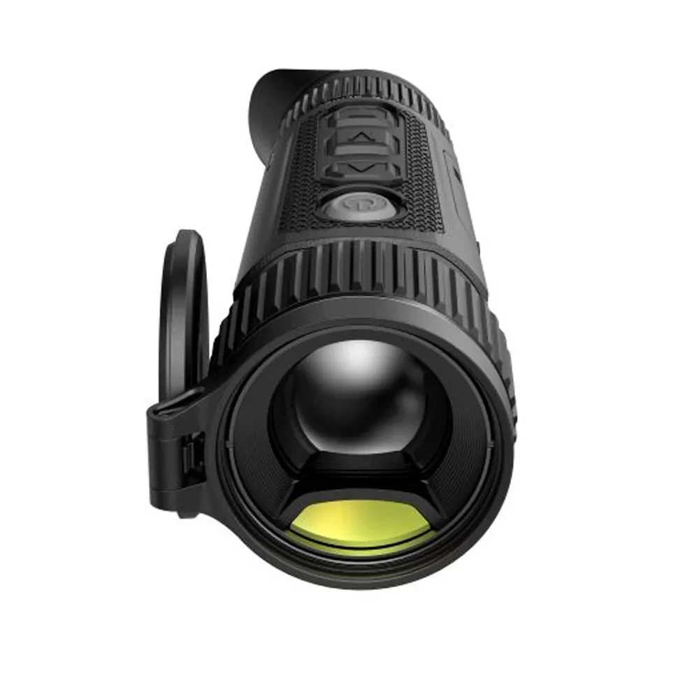 A készülék F0.9 fényerejű optikája majd 20%-kal több fényt gyűjt mint a piacon elterjedt F1.0-es (ami szintén nagyon fényerősnek számít) rendszerű hőkameráké. A fix fókuszú objektív alapesetben 3x nagyítással rendelkezik, amelyet digitálisan 28x-ig növelhetünk. Ekkora nagyításhoz már érdemes fotóállványt használni. Ember-alak észlelésére, az extra érzékenységű 14 mk-es hőérzékelő szenzor, egészen 1800 méter távolságig ad lehetőséget. Ennél a modellnél is manuális élességállító gyűrűt találunk az optikán.