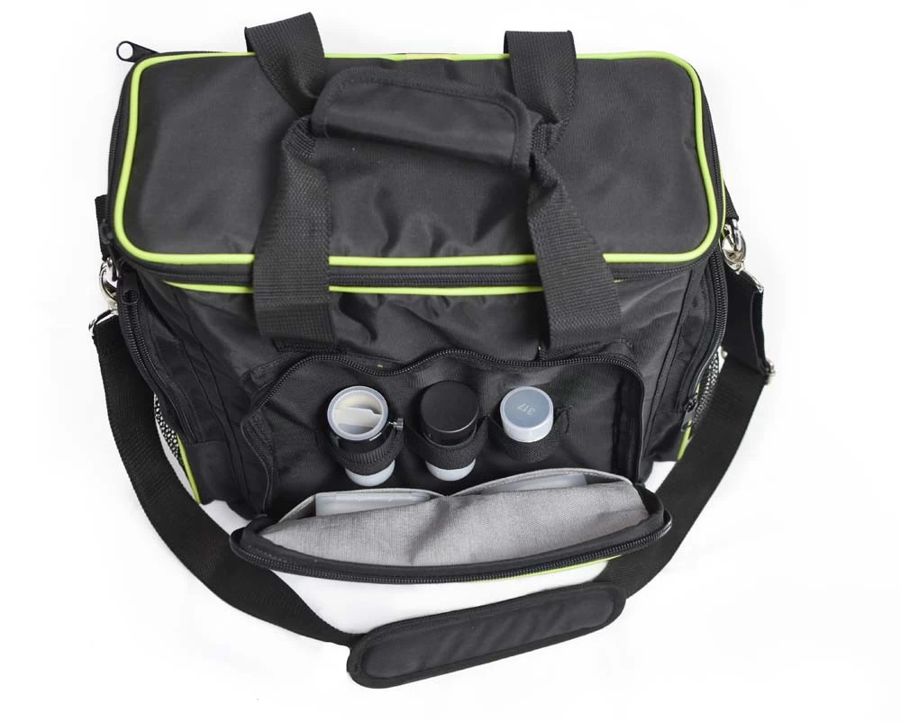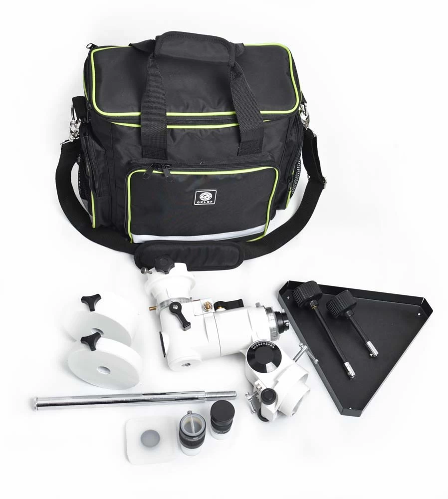 A hordtáska EQ-1,-EQ-5-ig terjedő ekvatoriális mechanika fejeket, valamint az AZGoto fejet képes elnyelni. A kisebb ekvatoriális mechanikák súlyai is elférnek benne, de az (N)EQ-5-é már nem. A jól átgondolt tervezésnek hála a táska zsebeiben is sok kiegészítőt tudunk tartani. A képek jól illusztrálják mi mindent tudunk a fej mellé még bepakolni.