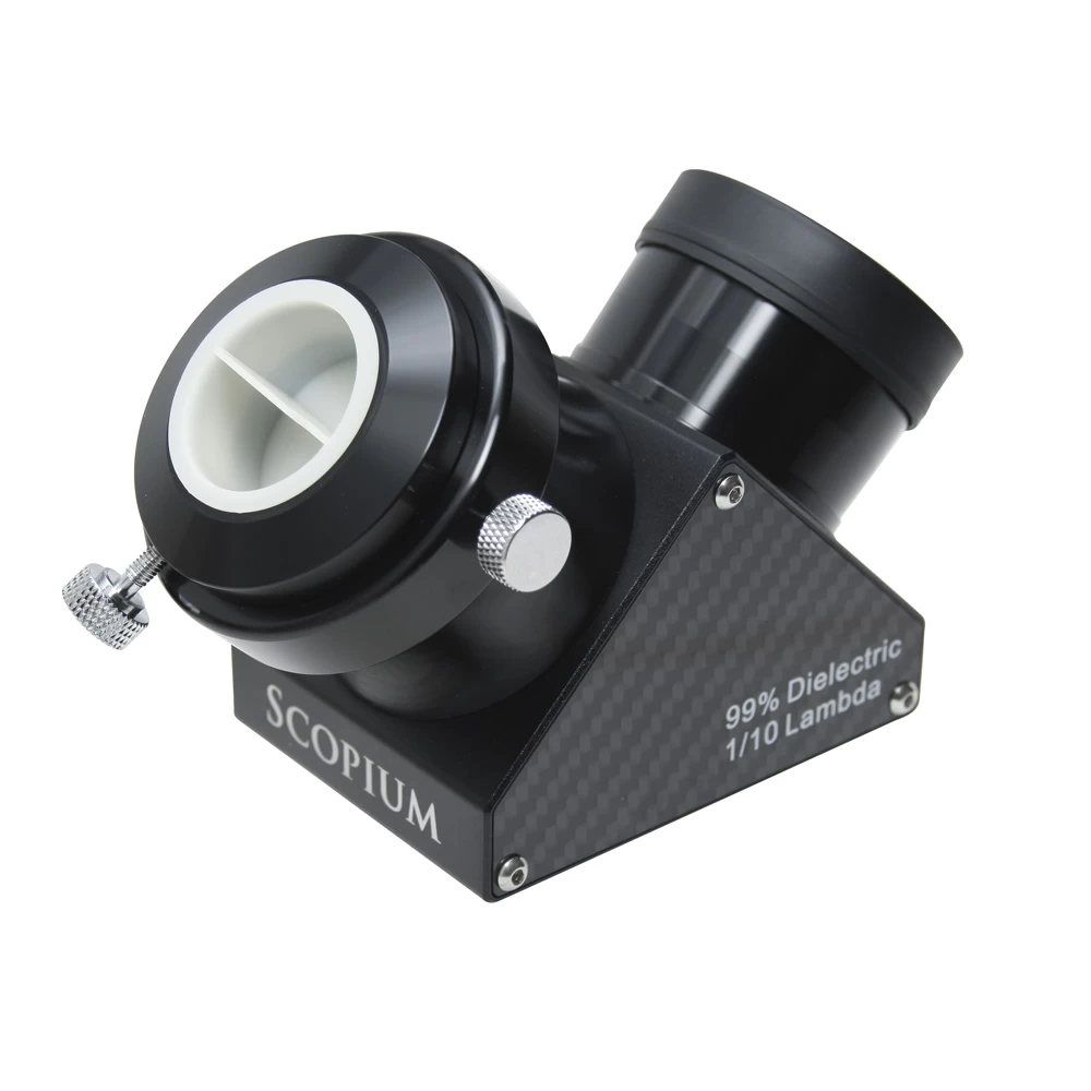 A Scopium dielektrikus zenittükör precízen megmunkált üveganyagára felvitt bevonat 99%-os fényvisszaverődést nyújt, tehát szemmel láthatóan világosabb, kontrasztosabb látványt mutat, szemben a hagyományos alumínium bevonatokkal, amelyek a fény 88%-át verik csupán vissza. A minőség másik fokmérője a felület megmunkálási pontossága, amiben szintén igen magas, Lambda 1/10 értékkel bír a Scopium dielektrikus zenittükör. A szénszálas mintázatú oldallapok egyedi megjelenést kölcsönöznek a terméknek.