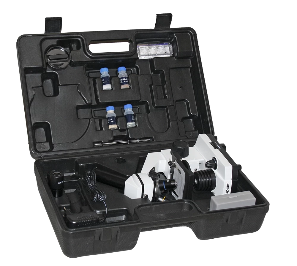 A csomagunkban a mikroszkópon mellett számos apró, de hasznos kiegészítő megtalálható: preparátum készítő készlet (pl. mikrotom, szike) 5 üres tárgylemez, 5 előre elkészített preparátum (fenyőlevél, gyapot, légyláb, hagymalevél, fagyökér). Mindezek egy praktikus műanyag tároló kofferban érkeznek. A mikroszkóp garantáltan hosszú időre leköti a mikroszkópia iránt érdeklődő gyermekeket!