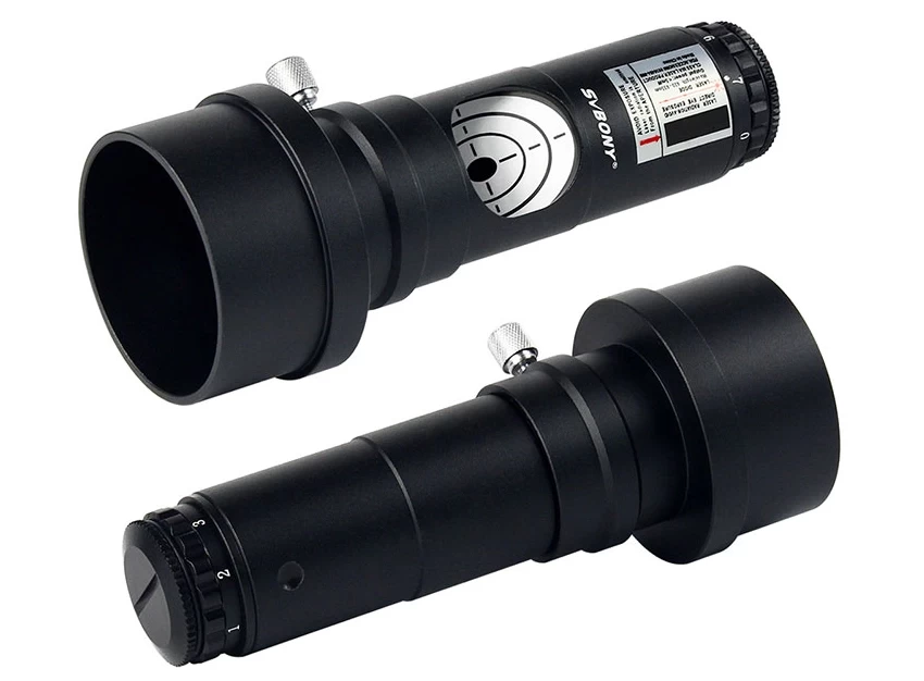 Az Svbony lézerkollimátor teljesen fémből készült, 1.25"-os okulárkihuzatba illeszthető, de a mellékelt adapter segítségével 2"-os okulárkihuzattal is használható. Fényereje 7 fokozatban állítható, így a lézersugár nagyon kisméretűre beállítható.