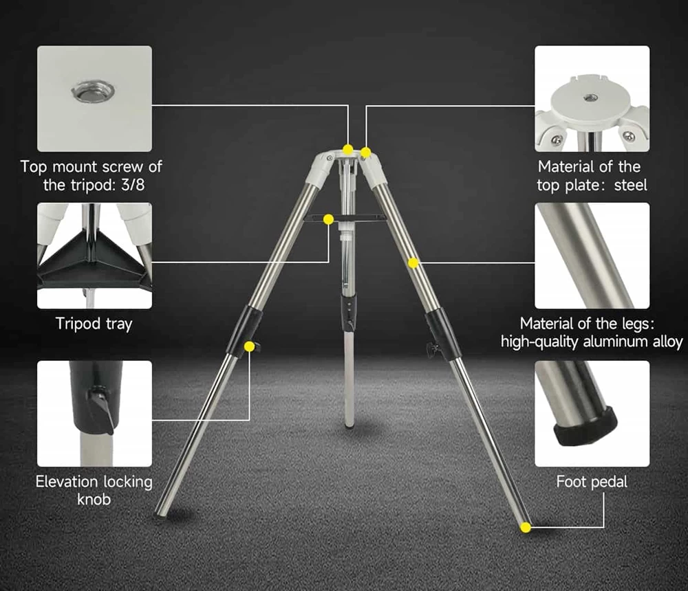 Az Svbony SV225T alumínium háromláb ideális utazó mechanikák, okostávcsövek stabil alátámasztására, de bármely szabvány 3/8"-os videóállvány fejhez is alkalmazható.