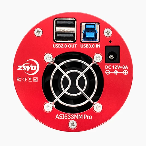 A ZWO ASI 533 MM-PRO monokróm hűtött kamerákat csúcsminőségű bolygófelvételek és mély-ég fotók elkészítésére optimalizálták. A kamera a SONY egyik legérzékenyebb, hatalmas teljesítményű 9 megapixeles, 3008 x 3008 felbontású érzékelője és 14 bites kimenete, valamint különösen nagy képfrissítési sebessége (teljes felbontáson 20 kép / másodperc, FullHD felbontáson kb. 54 kép / másodperc) hívja fel magára a figyelmet. A pixelek mérete 3.76 mikron amely rövid fókuszú, nagy fényerejű műszerekhez is optimálissá teszi. Magas 80%- feletti fényhasznosítása hátsó megvilágítású érzékelőjének köszönhető.