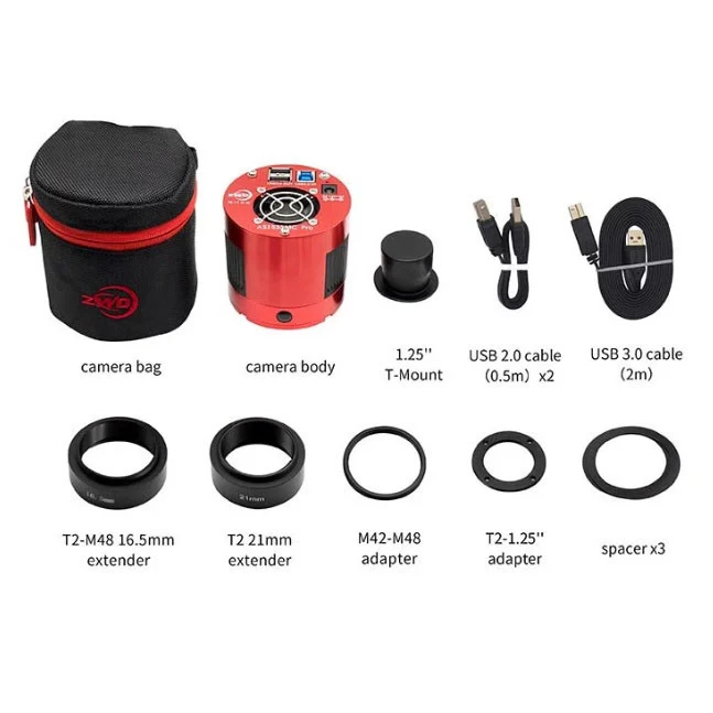 A ZWO ASI 533 MM-PRO monokróm hűtött kamerákban egy nagy teljesítményű Peltier-hűtő található, amely a környezeti hőmérséklethez képest 35°C -al csökkenti a kamera hőmérsékletét, így akár a galaxisok finom részleteit is rögzíthetjük. A kamera T2-es menettel rendelkezik, de a csomagban található adapterek segítségével bármelyik 1.25"-es és 2"-os kihuzatba betehető. A kamera hűtése 12V-os tápfeszültségen történik, melyhez minimum 3A-t javasol a gyártó.