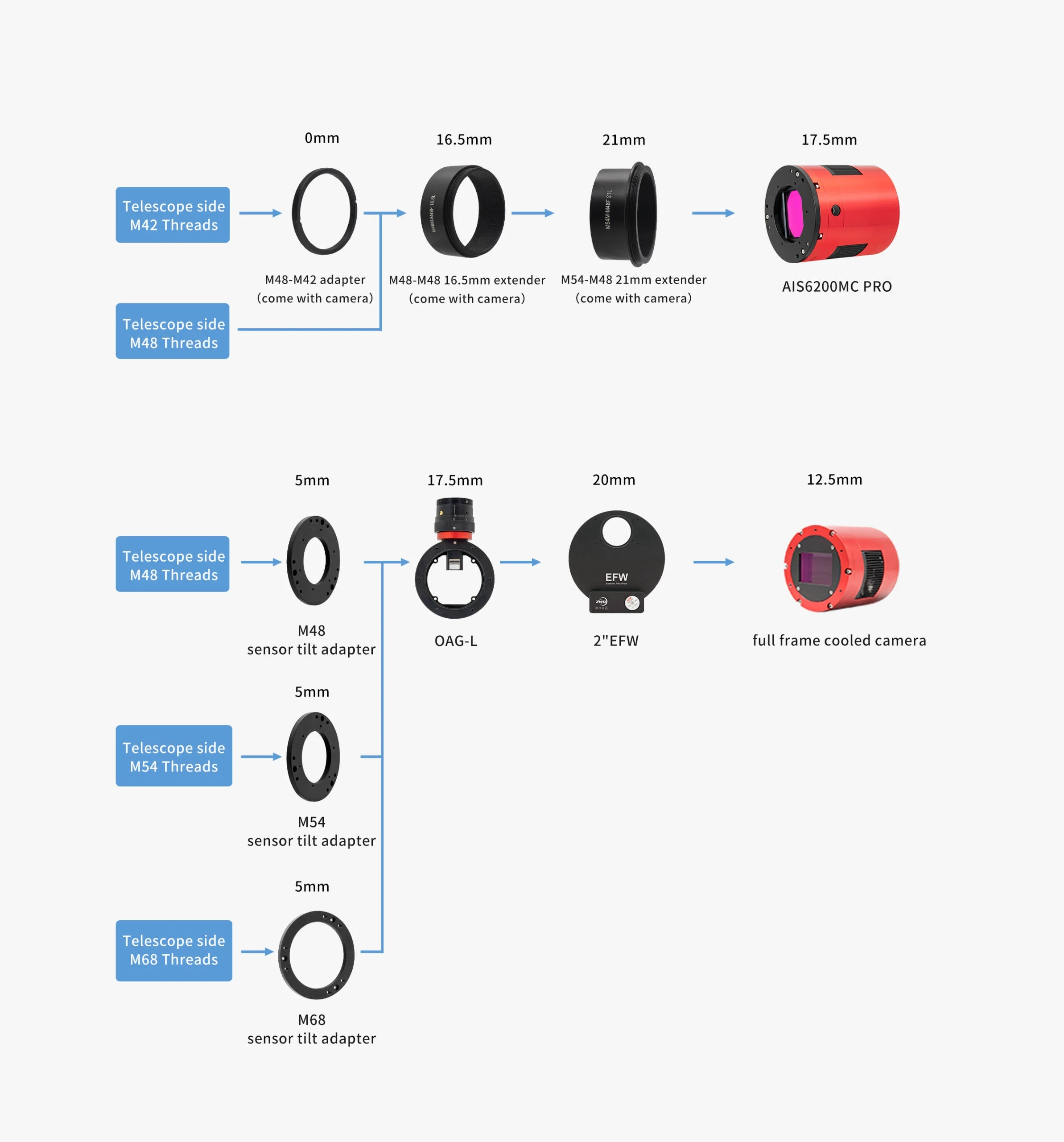 A ZWO ASI 6200 MC kamera szívében az IMX 455 Sony színes, hátsó megvilágítású érzékelő található, amely kiváló fényérzékenységet és alacsony zajszintet biztosít. A full-frame méretű szenzor lenyűgöző, 61.1 megapixeles felbontásával lehetővé teszi a rendkívül részletgazdag felvételek készítését. Az eszköz 16 bit színmélységű ADC-vel rendelkezik, amely a színek pontos és gazdag megjelenítését teszi lehetővé. A 512 MB DDR buffer memória zökkenőmentes adatátvitelt biztosít, így a hosszabb expozíciós idő alatt is megbízható teljesítménnyel számolhat.
