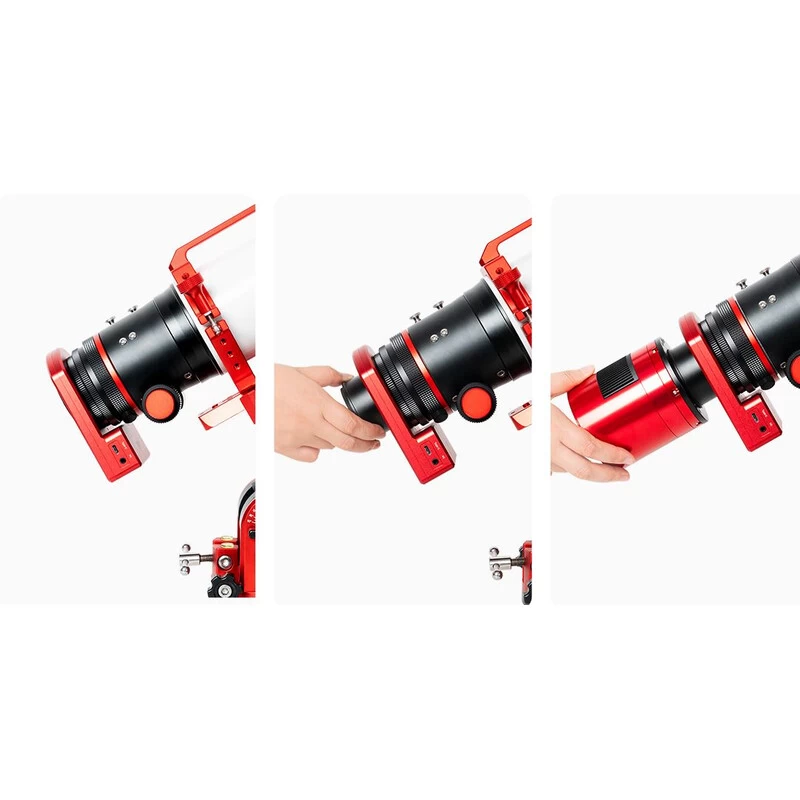 A ZWO motoros kamera rotátor lépésenként 0,02°-os pontossággal állítja be a kamera szögét. A szöghiba mértéke kevesebb mint 0.1°. A rotátor másodpercenként akár 7.5°-os sebességgel képes a kamera elforgatására, minimálisra csökkentve a várakozási időt. Mindkét oldalán M54 menet található, a csomag része egy M48 csatlakozó platform is a kamera felöli oldalra. T2 menettel rendelkező kamera esetén opcionális M42 platform használata javasolt.